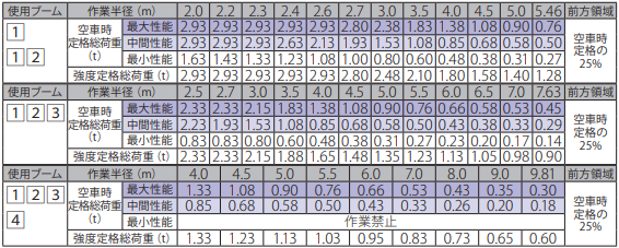 最大クレーン容量 2.93t×2.6m