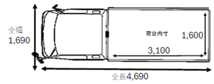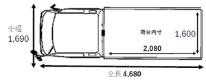 荷台は2t車とほぼ同等の広さが確保されています