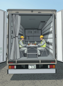 特に「作業環境管理」の観点から、エアコンの効いた直射日光を避けられる休憩場所の確保は必須となります。 当社の車両レンタルを活用することで、固定設備の設置コストを抑えつつ、現場ごとの柔軟な対策が可能です 。
